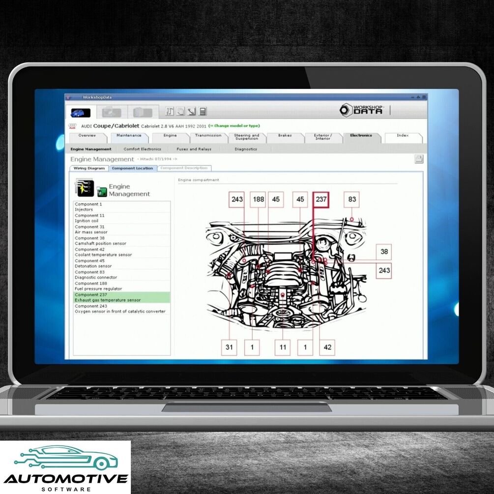 🚀 You will receive your personal download link the same day of your purchase, so you can start working on your car ASAP🚀  DATA FEELERS ARE 2022, MODELS UP TO 2018 ARE INCLUDEDManager for repair, maintenance, diagnostics, electrical circuits, normal clocks for all car brands. Like AUTODATA, the popular program for car services contains information about gasoline and some diesel engines injection systems (PINDATA), as well as parameters for adjusting the collapse-convergence, installation of belts and chains of timing, repairing airbags, airbags, ABS and other European production systems. . The program has electrical circuits and location schemes of nodes. At this moment Workshop Data offers: ✅ Almost 7,000 engine types;✅ Over 50,000 technical drawings;✅ Over 6,000 engine management systems;✅ Thousands of wiring diagrams;✅ Millions of specified repair times;✅ And much more. ➡ Languages: English, German, Dutch, French, Czech